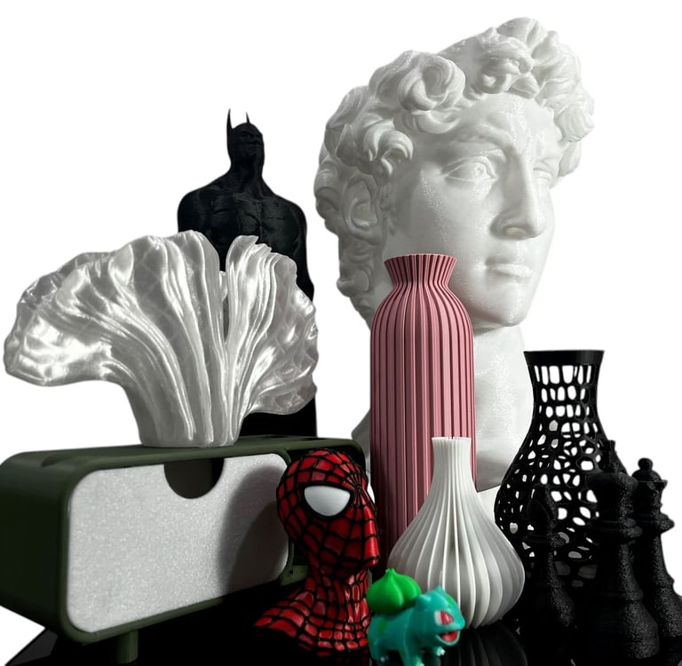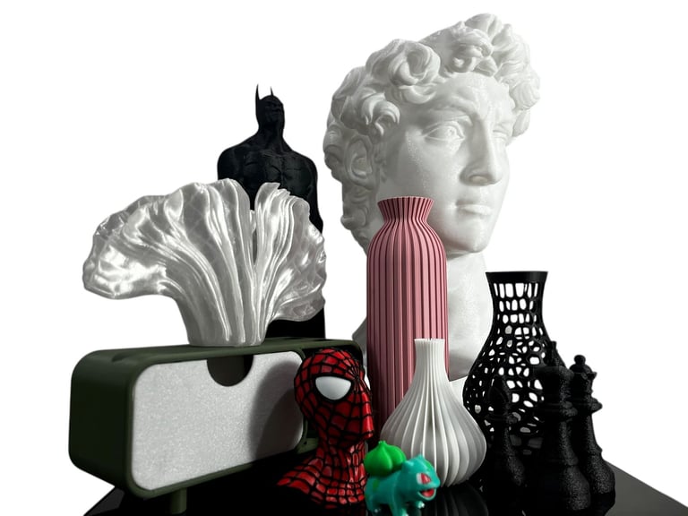 Our collection features a versatile and unique range of 3D printed products designed to enhance your space and creativity. From playful toys that spark imagination to stunning sculptures that serve as conversation starters, we have something for everyone. Our intricately designed vases and planters not only showcase your favorite plants but also add an artistic touch to your home or office. In addition, our organizers, holders, and trays offer practical solutions to declutter and keep your space tidy while maintaining a stylish look. Each item is carefully crafted using advanced 3D printing technology, ensuring quality and durability. Explore our diverse selection and discover how these innovative products can elevate your decor and everyday life.